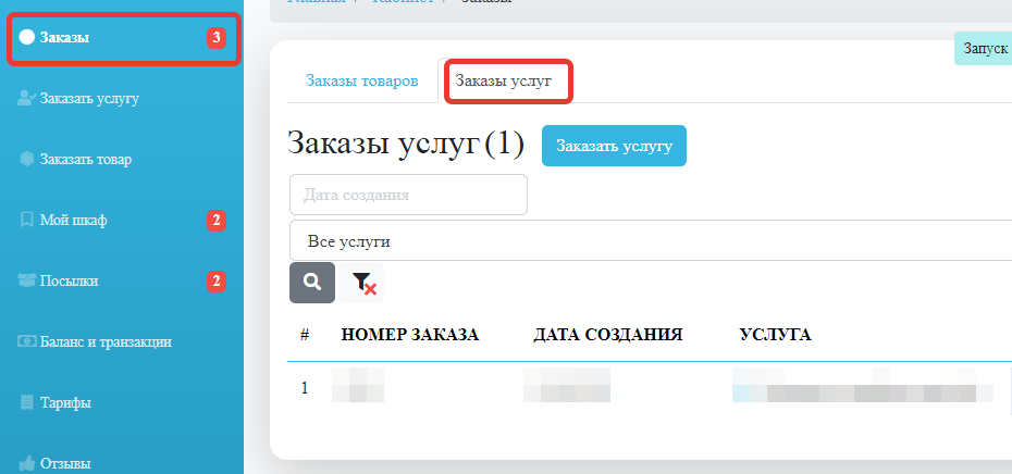 Мои заказы Услуг