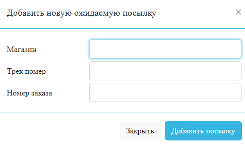 Заполните форму и нажмите “Добавить посылку”, чтобы добавить новую ожидаемую посылку на сайт. Мы будем знать, что к нам едет, а вы - доставку какой именно посылки вы заказали к нам на склад.Список ожидаемых посылок